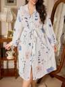 SHEIN Camisón largo de satén con parches de encaje y estampado floral romántico para mujer
