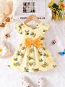 Conjunto de 2 piezas de top de manga larga de gasa con estampado de moño y pantalones casuales para niñas bebé, elegante y dulce