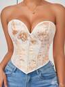 1 pieza Corset de encaje tipo bustier para mujer, body sexy para salir, fiesta, club, con tirantes de espagueti, top tipo camiseta ajustada
