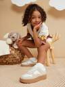 Mini mi #CozySteps Zuecos de plataforma con correa elástica en la parte trasera, estilo cálido y acogedor para aventuras cotidianas, hechos de tela de gamuza beige y piel sintética amigable con los animales para niños