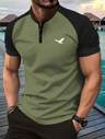 Nueva camiseta tipo henley de manga corta para hombre de verano, estampado casual de águila, ocio, viaje, al aire libre, campamento, tops masculinos