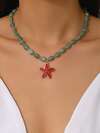 1 pieza Elegante y de moda collar de joyería bohemia para mujer con elementos marinos surtidos - Estrella de mar dorada, concha falsa de colores, concha, colgante de pez dorado, caballito de mar, langosta roja, sirena, cangrejo, cuenta de bambú, cuenta de jade falso, adecuado para todas las estaciones #1 Más vendidos