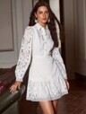 Simplee Vestido de línea A de encaje vintage elegante para mujer de talla grande, de manga larga con cintura ceñida, adecuado para bodas, fiestas y cumpleaños