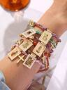 Set de 2 pulseras de flecos tejidos con cuentas de arroz, piedras de imitación y diseño irregular con forma de amor, un regalo elegante y de lujo para damas, hermanas, parejas, adecuado para San Valentín, fiestas diarias, fiestas y días festivos
