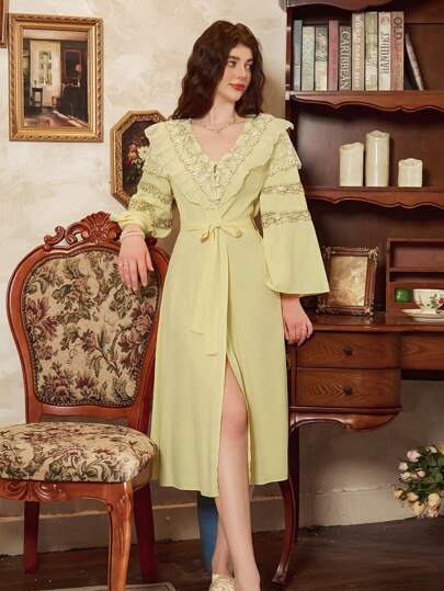 Côtesoire Bata larga elegante de estilo palaciego vintage para mujeres - Amarillo - Añade 5