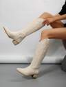 Botas vaqueras de media pantorrilla con tacón bajo y bordados retro occidentales para mujer, botas de montar de ante sintético de moda para otoño/invierno