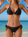Swim Vcay Conjunto de bikini negro con decoración dorada de sol de verano y vacaciones, atuendo de playa para mujer