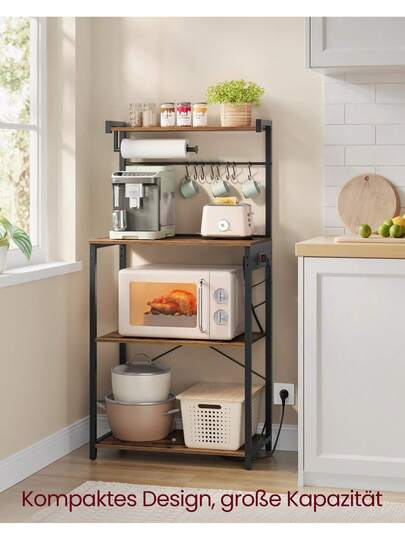 Küchenregal mit Steckdosen, Standregal, Mikrowellen-Regal 4 Ebenen, verstellbare Ablage, Küchenrollenhalter, 40 x 60 x 140 cm - EU C-Typ Stecker (220-240V) - Übersicht 2