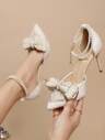 Herbst/Winter 2025 elegante weiße Perlen - verzierte Schleife Spitz - Zeh Plateau Absatz Schuhe - Stilvoll & Chic für besondere Anlässe, elegant, Damen Pumps, Party Outfits