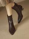 Französischer Stil spitz zulaufende Stiefeletten für Frauen, schmaler Absatz, V-Ausschnitt, Kitzelferse, Knöchellänge, Neuerscheinung Herbst/Winter 2024, schlanke Optik