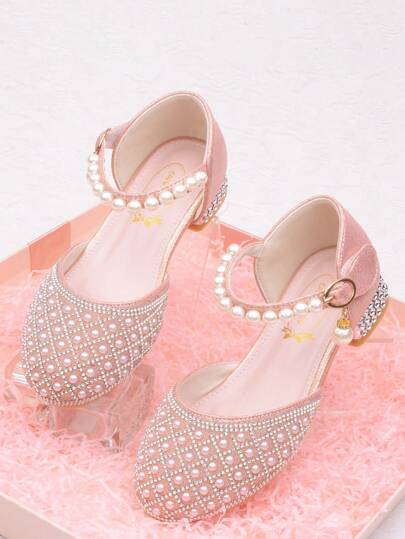 Kinder Kristall High Heels Schuhe, Mädchen Prinzessin Party Schuhe mit Strass, Kleinkind Mädchen geschlossene Zehenriemchen Sandalen - Pink - Übersicht 1