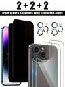 [6 IN 1] 3 Stücke lila Displayschutzglas + 3 Stücke Metalllinsen Blaulicht-Sichtschutzfolie kompatibel mit iPhone 16/16 Plus/16 Pro/16 Pro Max/15/15Pro/15 Plus/15 Pro Max/14/13/12/11, Geschenk zum Geburtstag, für Familie, Freunde, gehärtetes Glas, Spionageschutz, Handybildschirmschutz, Handyzubehör