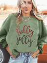 Pullover mit grünem Schmuckelement und Weihnachtsmann-Grafik, Oversize-Schnitt, Pailletten-Akzente, Langarmoberteil