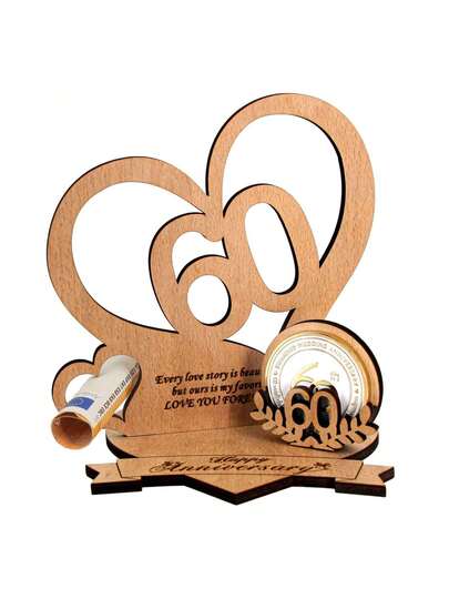 [Kreative Geldgeschenke zum Hochzeitstag] Eine schöne Idee, schön verpackte Geldgeschenke zum Hochzeitstag zu überreichen, wird ihn/sie sicher überraschen, die als Reisekostenzuschuss oder zur Erfüllung anderer Wünsche verwendet werden können. [Mit Liebe gestaltet] Das herzförmige, durchbrochene Design enthält das passende Jubiläumsjahr, und die Holztafel wird mit lasergravierten Liebeszitaten und einer Münze mit hoher Härte zum 1/20/25/30/40/50/60-jährigen Jubiläum geliefert, die Unzerstörbarkeit der Liebe symbolisiert. Das dreidimensionale Olivenblattdesign symbolisiert, dass Paare ein Leben lang in Harmonie zusammenleben und zusammenarbeiten. denn zwei Herzen schmiegen sich aneinander, um doppelte Liebe zu vermitteln. [DIY Geschenkideen] Dieses hölzerne Jubiläumsgeschenk können Sie mit Rosen, Schleifen, Lichterketten etc. gestalten. Rollen Sie Geldscheine oder Blumen in das kuschelige "Herzchen", der Münzhalter bietet Platz für Fotos oder Grußkarte, ein wunderschönes Jubiläumsgeschenk ist fertig. Nutzen Sie Ihre DIY-Kreativität, um dieses Geschenk voller Liebe zu gestalten. [Hochwertiges Holz und Gästebuch] Sie können Ihren gute Wünsche auf der Vorder- und Rückseite hinterlassen, ein Muster zeichnen, wenn er/sie dieses bedeutungsvolle Holzgeschenk wieder sieht, wird diese wunderbare Erinnerung wieder lebendig. Das Holz hat die FSC-Zertifizierung bestanden, solide und nicht leicht zu brechen, keine Grate, wird nicht Ihre Hand verletzen. [Weit Verbreitet] Dieser hölzerne Liebesherz-Halter ist ein einzigartiges Geschenk zum Hochzeitstag für Ehefrau, Ehemann, Eltern, Freunde usw. Er eignet sich auch hervorragend für den Esstisch, das Schlafzimmer, die Schreibtischdekoration und den Wunsch, Möge die Liebe stärker sein als Gold!