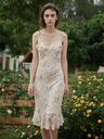 Simple Retro Damen Rüschen Blumenstickerei Slip Midi Kleid