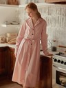 Simple Retro Damen Frühling Kleid mit Peter-Pan-Kragen Steppung, kontrastreichem Allover-Muster, elegant, locker-lässig Lang