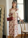 Simple Retro Damen Frühling Sommer Lässig Peter Pan Kragen zufälliges Muster grün elegant Retro elegant Valentinstag lange Kleider