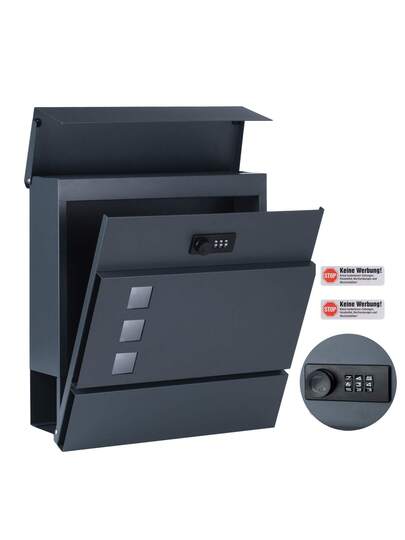 Zedelmaier Personalisiert Briefkasten mit Edelstahl Namensschild Wandbriefkasten mit Zahlenschloss Postkasten Briefkästen mit Zeitungsfach Mailbox Anthrazit - Dunkelgrau - Übersicht 7