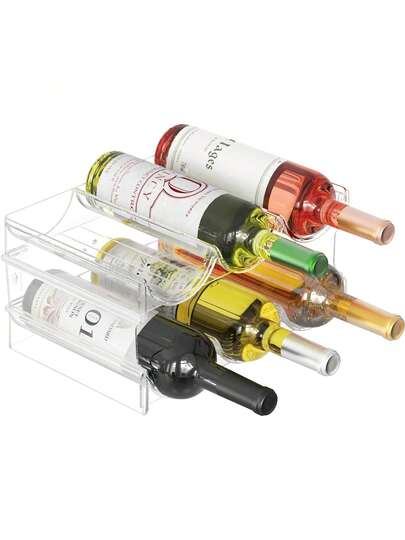 Stapelbarer Flaschenregal, 2er-Set Weinflaschenhalter aus Kunststoff, Hält bis zu 6 Flaschen, Platzsparender Organizer für Kühlschrank, Küche & Büro - Weiss - Übersicht 1