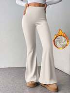 Aloruh Minimalistische Pendler- und Haushalts-Aprikose Hohe Taille Skinny Flared Frauen Strickhosen