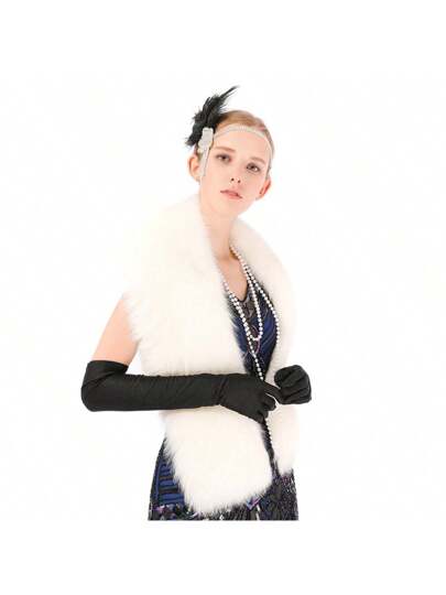 Flauschiger Damen-Schal, flauschiger Partykragen, Fellumhang für den Winter, Braut-Hochzeit-Cover-Up - A - Übersicht 1