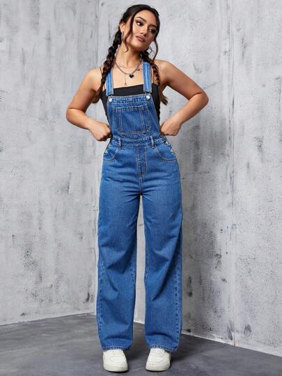 SHEIN ICON Denim Overall mit schrägen Taschen, ohne Top