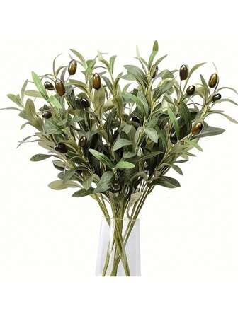 2 Stücke künstliche Olivenzweige, gefälschte grüne Olivenzweige, Grünpflanzenstiele künstliche Olivenzweige Girlande, künstliche Olivenbaum Äste und Stiele, Künstliche Pflanzen und Früchte für Heim, Büro, Innenraum Dekoration, Partys, Hochzeiten, Feiertags Dekoration