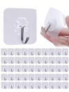 50 piezas Ganchos transparentes sin rastro, ganchos mágicos adhesivos resistentes para montar en la pared, aptos para superficies variadas, impermeables y sin clavos, accesorios de baño, ganchos para colgar en la pared