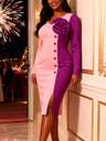 Vestido de línea A con cuello de corazón, mangas abullonadas y cuentas de perlas para mujer, falda de línea A con cuello cuadrado vintage, adecuado para fiesta, cóctel, cita, boda, dama de honor, graduación, invitado de boda, moda de otoño, esencial para volver al colegio