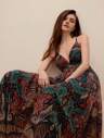 Anewsta Vestido maxi elegante de gasa de manga larga y cuello en V de unicolor para mujeres