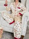 CottageSlumber Conjunto de pijama de talla grande con estampado de cerezas en toda la prenda, cómodo y casual. Detalles acogedores y elegantes, ropa de otoño e invierno