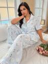 CottageSlumber Conjunto de pijama con cuello en V, manga corta y pantalón largo con estampado floral jacquard