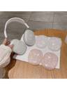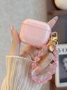 Estuche transparente con forma de corazón para auriculares con gancho plateado