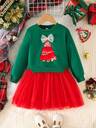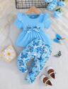 Conjunto de 2 piezas de top de manga larga de gasa con estampado de moño y pantalones casuales para niñas bebé, elegante y dulce
