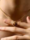1 pieza Collar con colgante de gema ovalada marrón vintage, chapado en oro de 18K de acero inoxidable, moda para uso diario, buen regalo para hombres en Navidad, Año Nuevo, Día de San Valentín