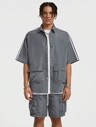 Manfinity RebelGame Camisa de manga larga con estampado de rayas, holgada, para hombres