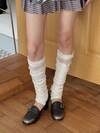 1 par de calentadores de piernas blancos de punto acanalado para mujer, calentadores de piernas de otoño, Y2K, cálidos