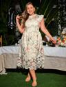 Simplee Vestido de mujer talla grande de manga larga con cintura ceñida, falda acampanada y encaje elegante y vintage, ideal para fiestas, Navidad, invitada de boda y Año Nuevo
