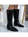 Botas occidentales casuales de tacón alto grueso, puntera puntiaguda y ante sintético negro de moda para mujer