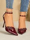 SVRM Sandalias de tacón alto elegantes con tiras cruzadas y tira trasera decoradas con rhinestones, material de cuero, elegantes, tacones de mujer, elegantes, atuendos de fiesta, tacones puntiagudos, Otoño/Invierno 2025