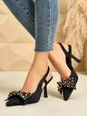 SVRM Sandalias de tacón alto con puntera puntiaguda, adornadas con lazo y cristales, elegantes, para mujer, ideales para fiestas y eventos, Colección Otoño/Invierno 2025