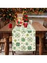 1 pieza Camino de mesa de lino con tema navideño, adornado con copos de nieve y piñas para decoración navideña, embellecido con ramas de pino verde y bayas rojas para decoración, mantel rectangular de poliéster para decoración navideña