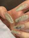 24 piezas Juego de uñas postizas ovaladas cortas y sencillas, uñas acrílicas con decoración de ojo de gato/lazo en color gris sólido, uñas postizas desmontables de cobertura completa de larga duración, incluye 1 hoja de pegatinas adhesivas y 1 lima de uñas mini, perfecto para uso diario, suministros de uñas
