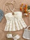 Soleia Camiseta sin mangas con estampado de pintura al óleo estilo vacacional, con abertura en el cuello y detalle de lazo, para otoño/invierno