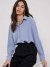 BizChic Blusa de drapeado de manga larga con solapa de unicolor para mujer, estilo urbano básico, elegante y simple, de moda, casual, adecuada para maestros y uso en la oficina