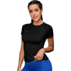 Powerista Camiseta deportiva de manga corta de color liso y sin costuras para mujer, camiseta ajustada de gimnasio, camiseta de compresión