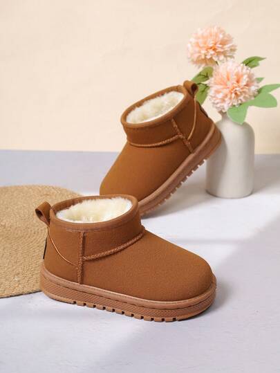 Botas de nieve para niños 2024, botas forradas térmicamente para niños y niñas pequeños, invierno - Marrón - Ver 1