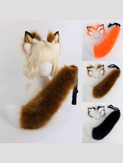 2 piezas Diadema ajustable con orejas de zorro, accesorios para el cabello, accesorio de disfraz, Halloween - A - Ver 1