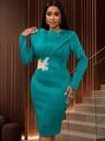 Vestido de línea A con mangas abullonadas, estampado elegante de flores 3D en jacquard, adecuado para cóctel, ceremonia de graduación, cumpleaños, invitado de boda, baile de graduación, cena formal, regreso a casa y otras ocasiones