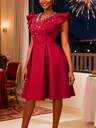 Vestido de línea A con escote en V, mangas con volantes y cuentas, de estilo elegante y rojo, para primavera y verano, para eventos y cócteles